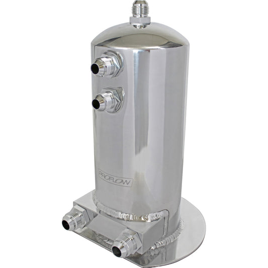 Proflow Fuel Surge Tank Fabricated Aluminium, 254mm x 108mm round, 2.5L, AN Fitting Kit, Polished, Dual Outlets