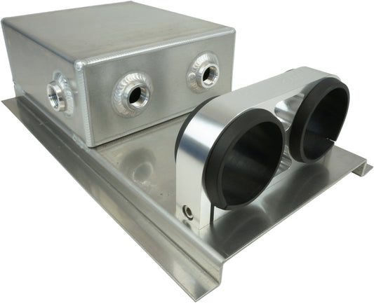 Proflow Fuel Surge Tank & Pump Kit Fabricated Aluminium, Undercar, 2 x 044 Pump, 80mm x, 200mm x 180mm, 2.5L, AN Fitting Kit, Polished