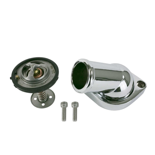 Proflow Aluminium Water Neck & Thermostat kit LS Chev For Holden 45 degree Swivel Chrome