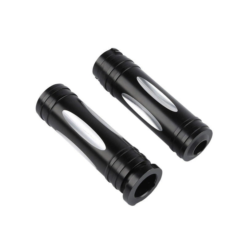 Attitude Inc's Universal Handlebar Hand Grips gives you the latest styles to complement your handlebars , Unique customized look, modern, stylish, attractive, and functional. Add features to your motorcycle, and enhance your motorcycle appearance. Black motorcycle grips with throttle assistor control on the right side, and it will make the operation easier. Avalable in all Chrome/Black or Black/Black and come as a set to suit your 1" HandleBars ends. Fitment For Harley '02-'17 VRSC models. For Harley '96-later XL models. For Harley '08-'13 XR models. For Harley '96-'17 Dyna (except FXDLS) models. For Harley '96-'15 Softail (except FLSTNSE, FXSBSE and '11-'12 FLSTSE) models. For Harley '96-'07 Touring models. Universal fits most for Honda/Yamaha/Suzuki/Kawasaki cruisers bikes with 25mm/1" handlebars