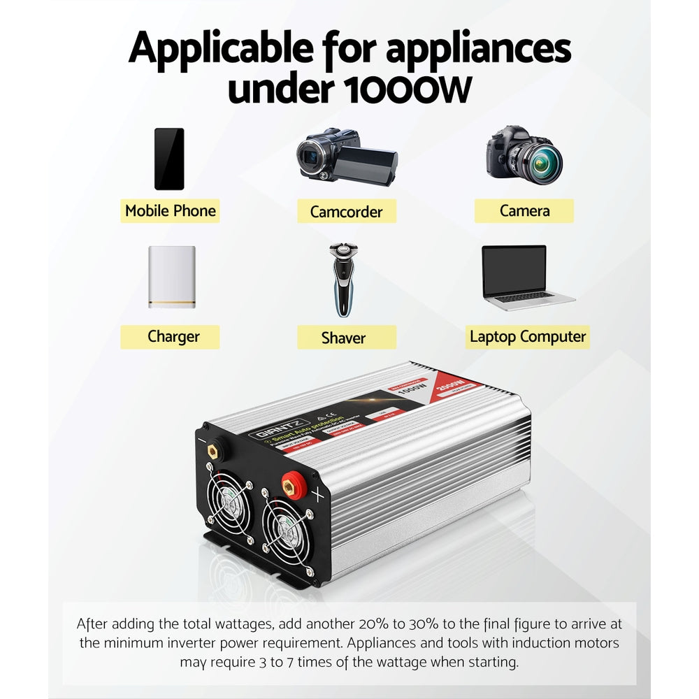 Giantz Power Inverter 1000W or 2000W Pure Sine Wave 12V-240V Camping Boat Caravan
