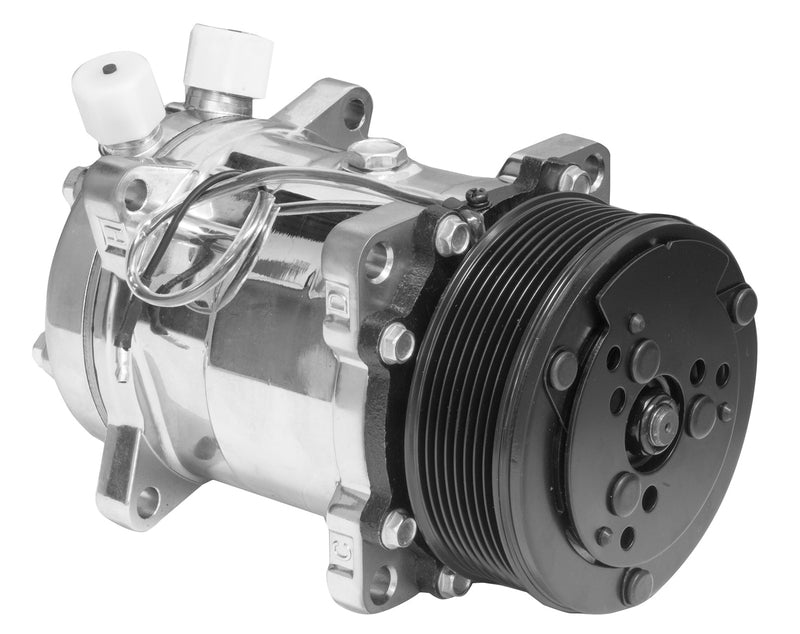 Proflow Air Conditioning Compressor, Sanden 508, Aluminium, Polished, 8-groove Serpentine Pulley, Each