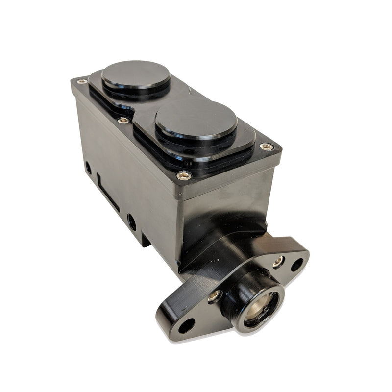 These billet aluminium universal master cylinders are 100% machined for superior strength in comparison to cast aluminium counterparts. They have a standard 3.375” bolt pattern used by most brake manufacturers so they will mount to most popular pedal assemblies and firewalls. Has 1/2”-20 and a 9/16”-18 ports. Features: 1” bore with hard anodised aluminium EPDM internal seals for reliability Screw-in caps for super easy filling and maintenance Completely CNC machined from 6061-T6 aluminium Works in both manual and power-assisted applications